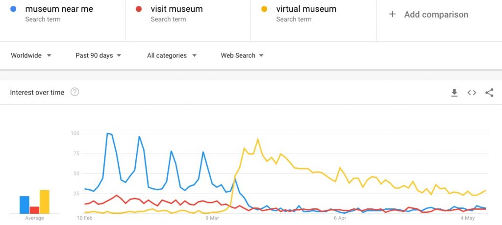 We can also see that it spiked early on and has been declining week on week ever since. Just like ‘virtual museum’.