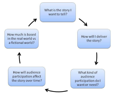 One of the people she referred to was Robert Pratten who was responsible for the diagram above. It’s worth checking out his book Getting Started in Transmedia Storytelling for more.