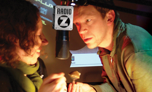 Last night I got to enjoy Stan’s Cafe‘s new production, Tuning Out with Radio Z, from a fairly unique perspective. I say fairly unique because there were four others who were tucked up in beds arranged around the stage at the mac.