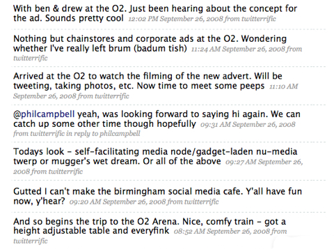 And here are a couple of videos I streamed (and recorded) live using Bambuser, a nice little service that I’d all but forgotten about. Please bear in mind that these couldn’t have been any more spur of the moment so there’s no incisive questioning or anything. The first is with Ed from O2 who explained what the ad is for: